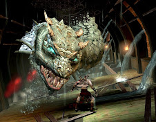 ,. Siga em frente pela porta azul, vc encontrara um save game, um mastro amarelo, salve. Siga pela direita e vc encontrara dois baús, um verde e outro azul, suba na rede e vc encontrara novamente uma Hidra, mais agora ela ta com seus bebes, vc terá que destruir os dois e só depois a mãe, ataque os bebes junto, um pouco um pouco outro, até que tenha quase matado, eles cairão ao lado de umas caixas, quando isso acontecer corro ate as caixas e suba nelas usando pulo duplo, e por fim pulo em cima da ancora que esta lá, a sua direita, faça isso com os dois, agora suba na rede que esta bem no meio e vá até a hidra mãe, para matá-la proteja-se atrás do mastro apertando L1, assim que ela matá-la ataque com seqüências e poderes, ela vai gritar as vezes, se cair volte lá e continue,(dica: quando ela gritar, pule e ataque com quadrado varias vezes) faça isso até que aparecer uma bola na cabeça dela, é o sinal, chegue perto e aperte bolinha, em seguida aperte rapidamente bolinha para machuca-lá, para matá-la de vez terá que fazer isso 4 vezes, na 4 vez, siga a seqüência que aparecer, agora vc deve entrar dentro da sua boca para pegar a chave, vá até o final e pegue com um humano. Volte e vá para a direita e suba novamente nas caixas, vc vai encontrar dois baús, 1 tem GorgonEye, o outro vida, veja acorda descendo, pule e a agarre-a, vc caíra novamente onde tinha os arqueiros, salve, e siga em frente matando todos, suba na caixa e vá pela porta a sua direita até chegar naquela porta que precisava da chave lembra, aperte R2 para abrir, corra pelo corredor até uma porta, Chute-a com R2, esta cena marca o fim da primeira fase.